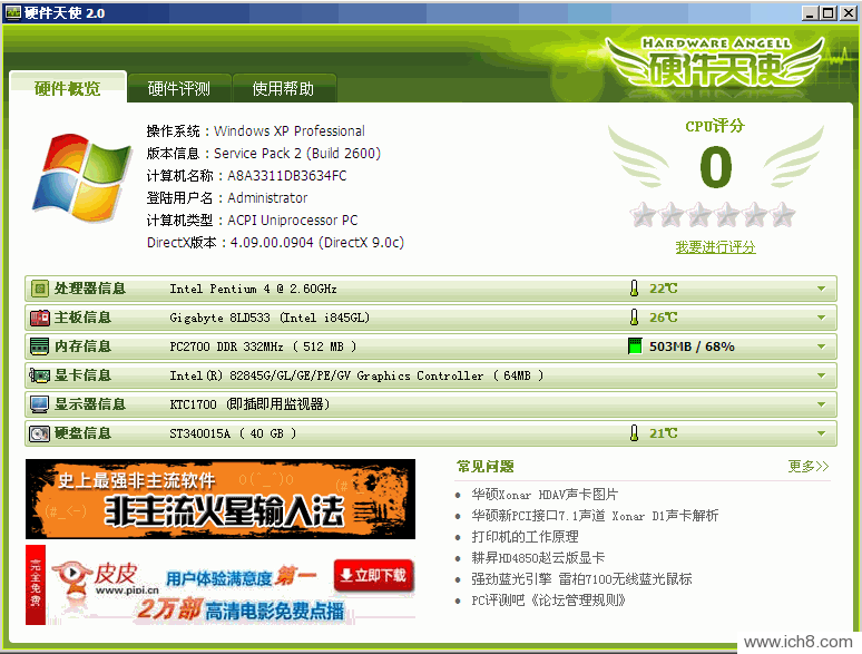 超级兔子硬件天使 3.0.603.1 绿色版_是款功能强大的硬件信息检测利器软件简介: