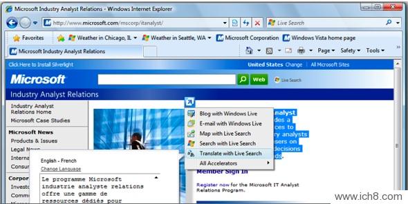 微软全新推出的最新版本网页浏览器IE8(Internet Explorer 8),此为英文版。