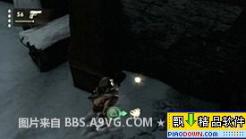 9.从机关处滑下来后.跳到下方平台.这里有一根横躺的木柱.如图视角看去.就在左前方角落.