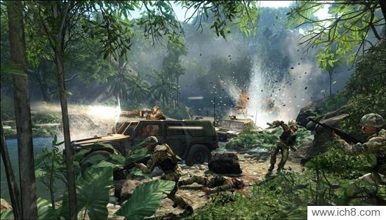 《CRYSIS》游戏发生在一个如史前公园般美轮美奂的热带小岛上,如画般的沙滩,细致得令人心动的丛林,清澈得让人情不自禁想跳下去的水,都在向我们展示着下一代游戏应有的样子。《CRYSIS》的游戏场景,是在夏威夷群岛实地取景创作而来。Crytek以毫不吝啬硬件资源的坚持精神,在这款大作中挥毫泼墨,为我们展现了一幅足以乱真、犹如亲历的细腻热带丛林游戏场景,并在DX10效果、物理技术、枪械系统的合力支持下,将自然还原到了每一个细节。它将灵活刺激的游戏体验与惊人的视觉效果相结合,轻松成为有史以来最好的射击游戏之一。但是它也使广大玩家的游戏平台饱受折磨,轻松入选有史以来最变态的“机器杀手”排行榜。