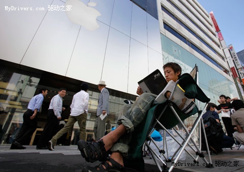 今天是苹果iPad的海外市场上市日,包括了澳大利亚、加拿大、法国、德国、意大利、日本、西班牙、瑞士和英国都就在今天陆续开始销售iPad。作为首个发售iPad的亚洲国家,日本率先拉开了海外iPad上市热潮。在早上8点正式发售前,东京银座苹果专卖店门口就排起了1200人的长队,整个队伍贯穿了十字路口,挤占了人行道,其他过路人只得绕道而行。排在最 前面的是19岁的山中物智,他在26日下午就来到了店门前等候。店面周围还聚集了不少新闻报道人员。