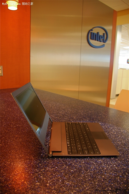 从Intel现场展示的样机来看,为了达到14mm的超薄厚度,原本属于屏幕的空间被砍掉一部分,留出来安放电池,因此打开的时候中间会有一个“小窗户”。