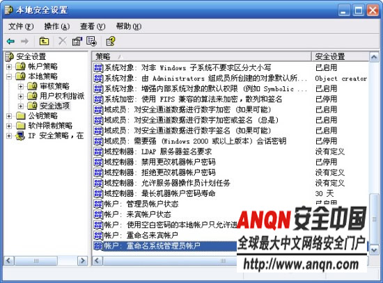 3.在“本地安全设置”窗口中,选择左边的“安全设置|本地策略|安全选项”,然后双击右侧的“帐户:重命名系统管理员帐户”,如图7所示。