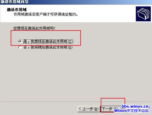 11、输入要给客户端配置WINS,注意WINS顺序,我们这里首选的WINS地址就是WinosDC3自己,备用WINS是WinosDC2,”下一步“。