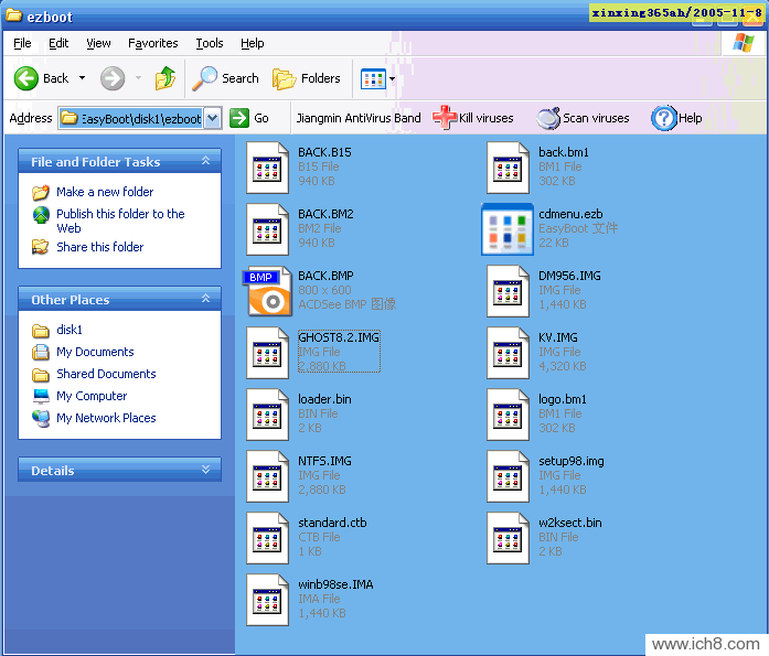 1) 将Windows XP光盘根目录(IS0解压也可以)下的 i386 目录拷贝到C:\EasyBoot\disk1下面