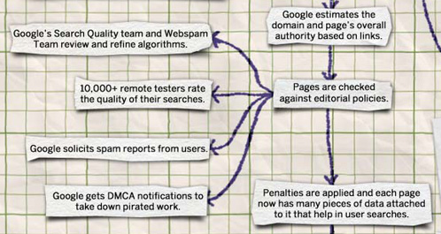 上面这几点大概就是谷歌在收录信息时对内容提出的“准入”要求,看来在一些开放的地方(比如论坛)大量发布URL以求让谷歌关注,这一小伎俩是没有什么效果的。以上是信息被谷歌收录之前所发生的事,一旦信息被谷歌收录了会发生什么呢?请往下看: